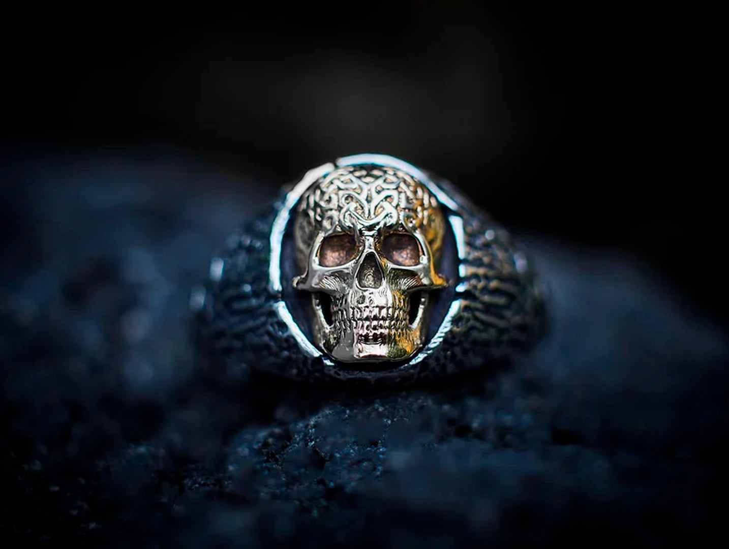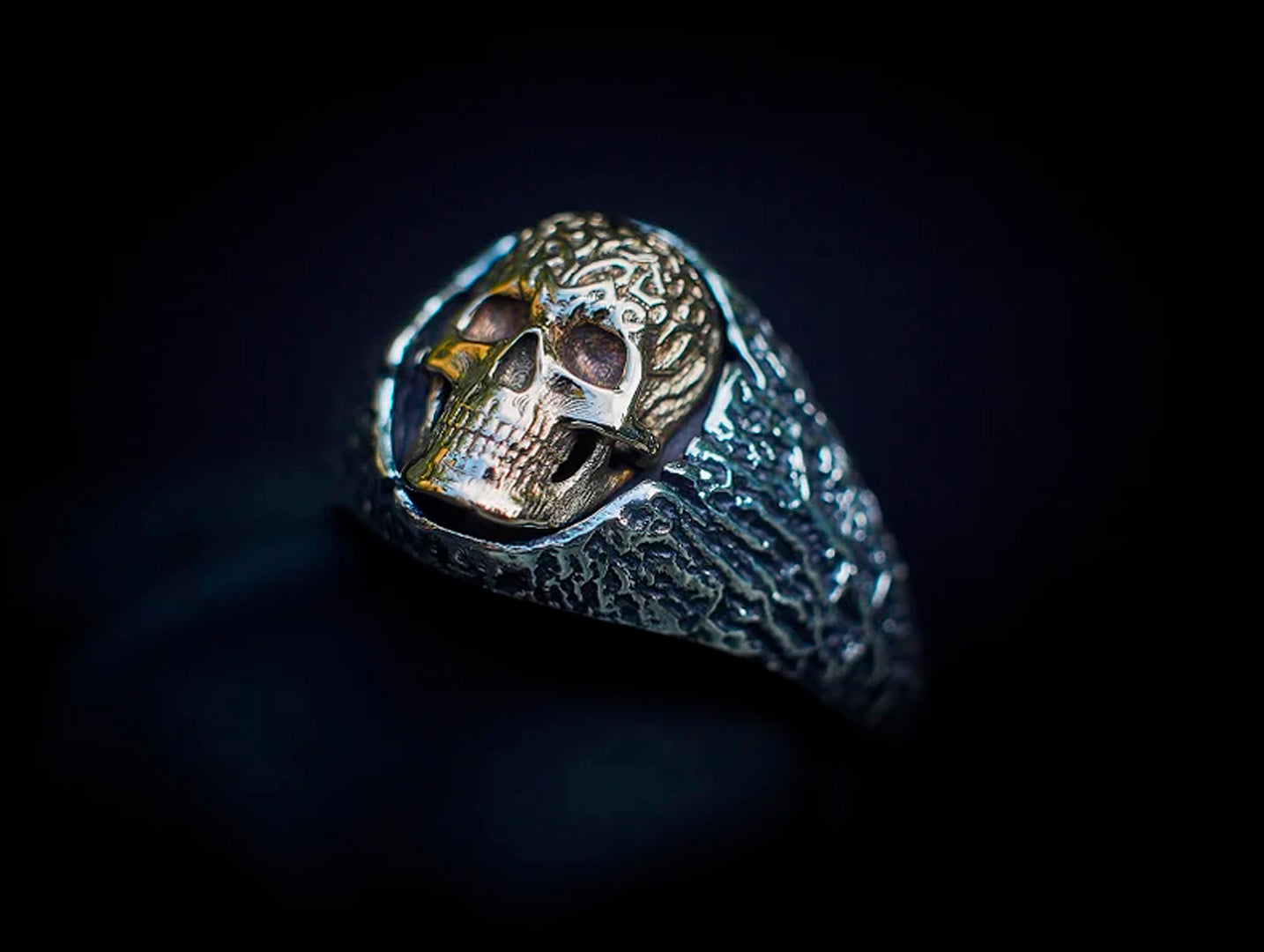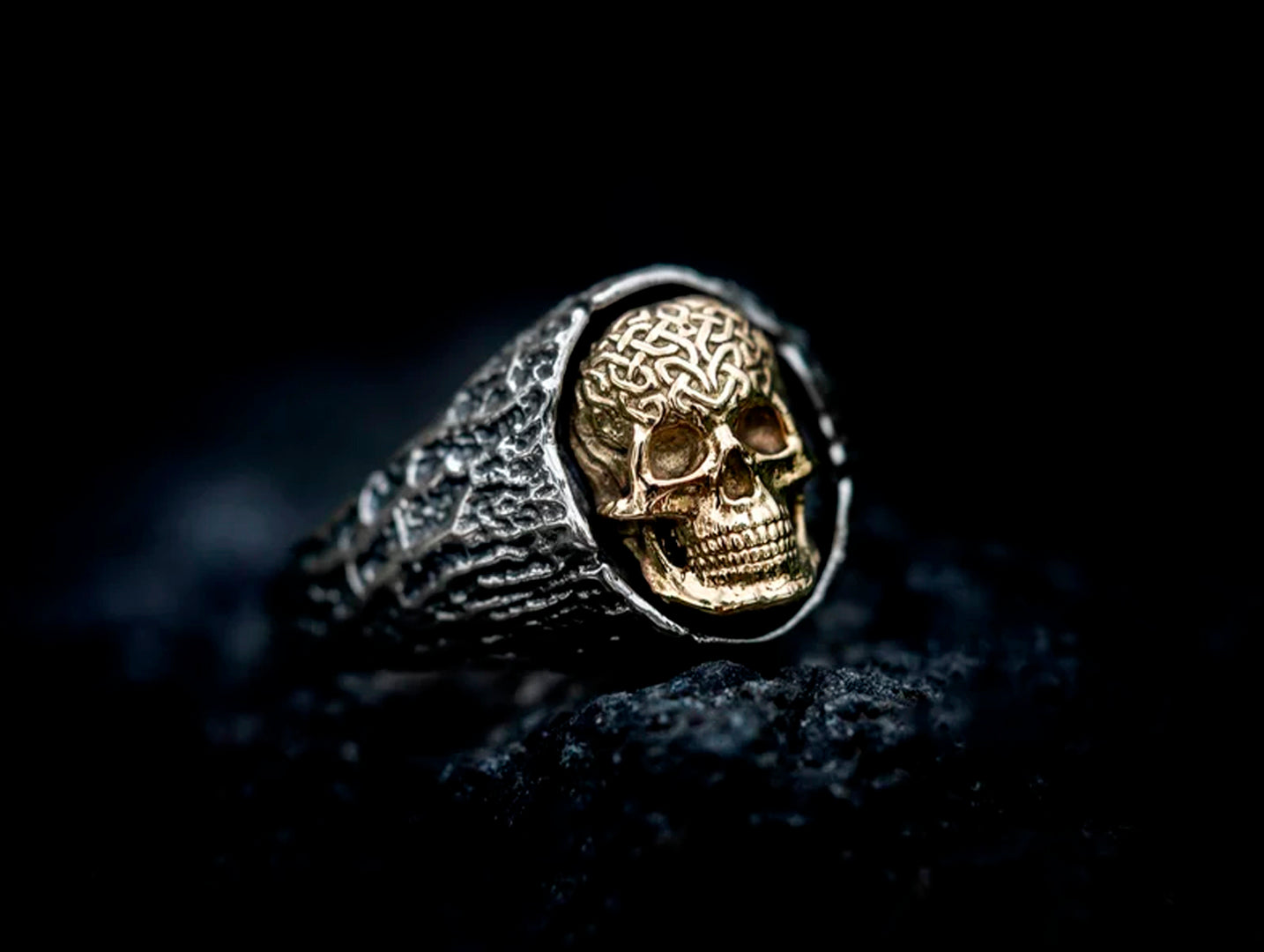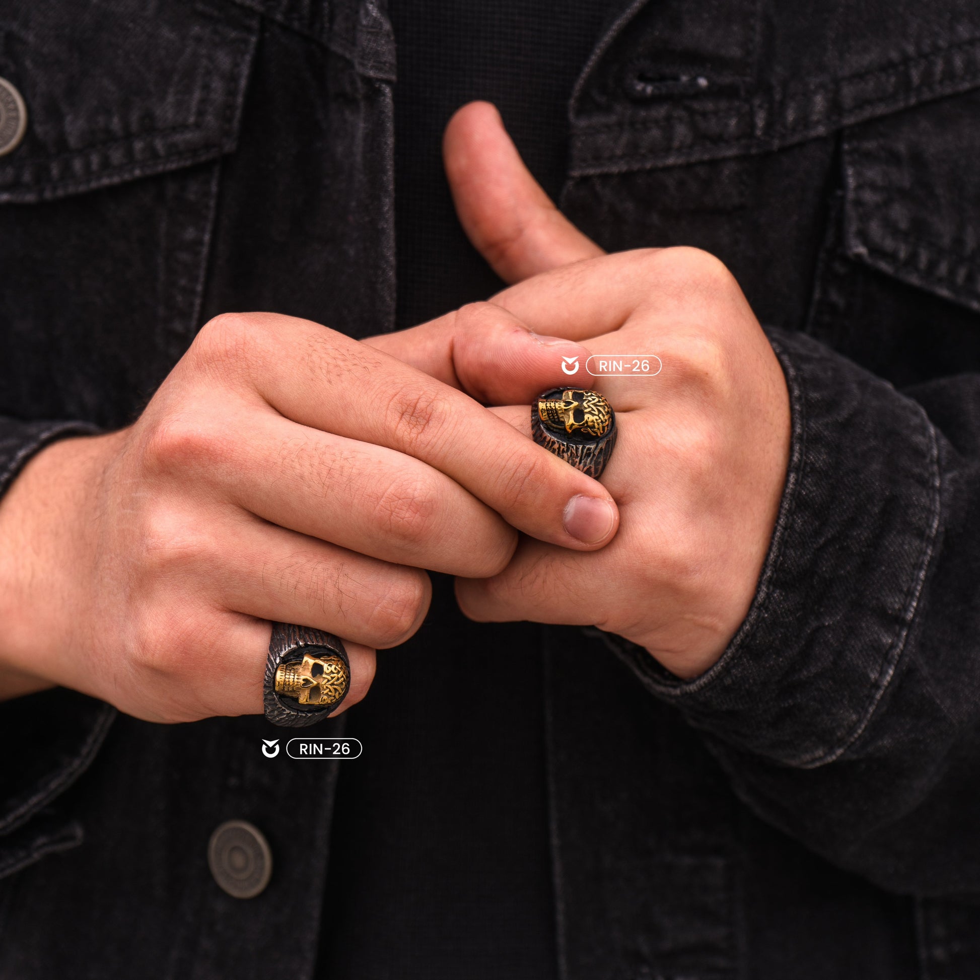 ANILLO CALAVERA PLATA Y DORADO | RIN-26