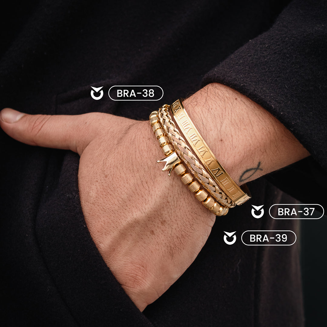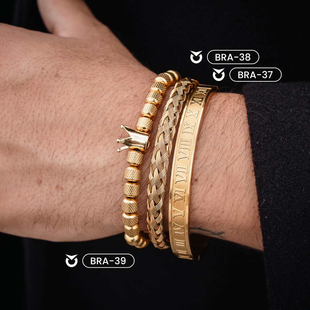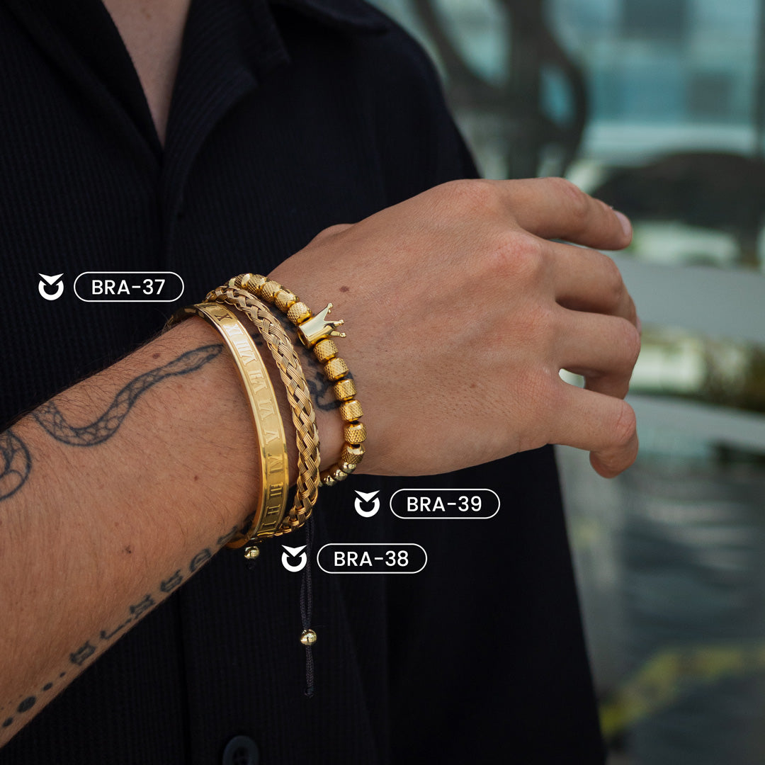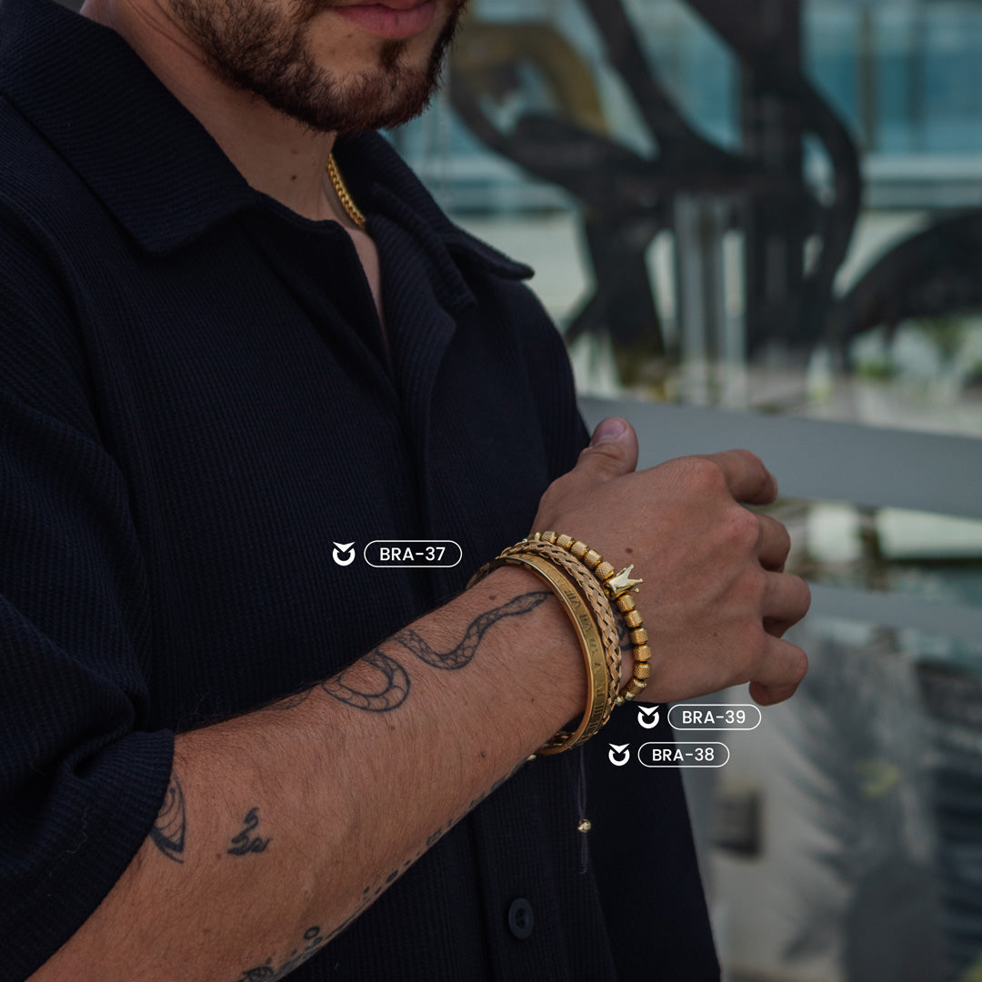 Disfruta del look inconfundible con nuestro pack de joyas de color dorado. Perfecto como accesorio para completar tu outfit, es la combinación perfecta de estilo y frescura. Contiene los modelos BRA-37, BRA-38 y BRA-39. ¡No dudes en adquirir el tuyo!