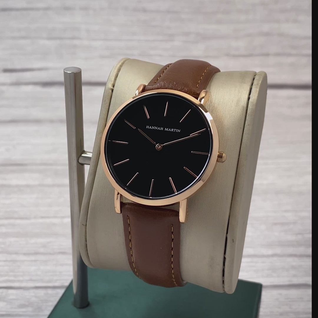 RELOJ HANNAH MARTIN ORIGINAL ELEGANTE MARRON CON NEGRO | HAN-19