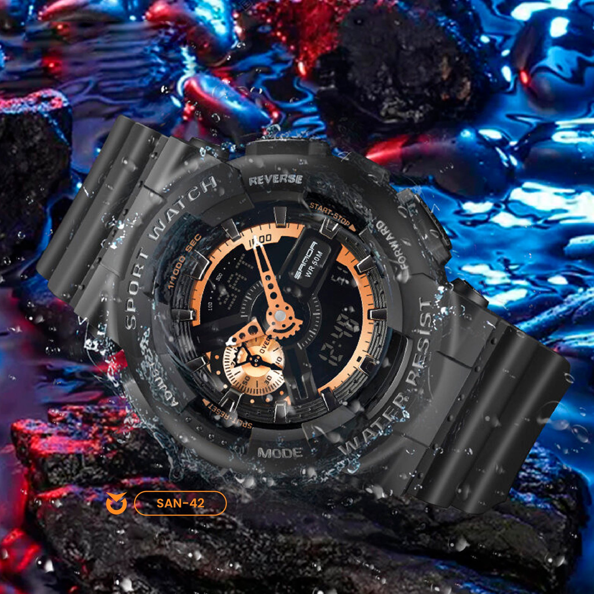 RELOJ SANDA DEPORTIVO NEGRO COBRIZO | SAN-42